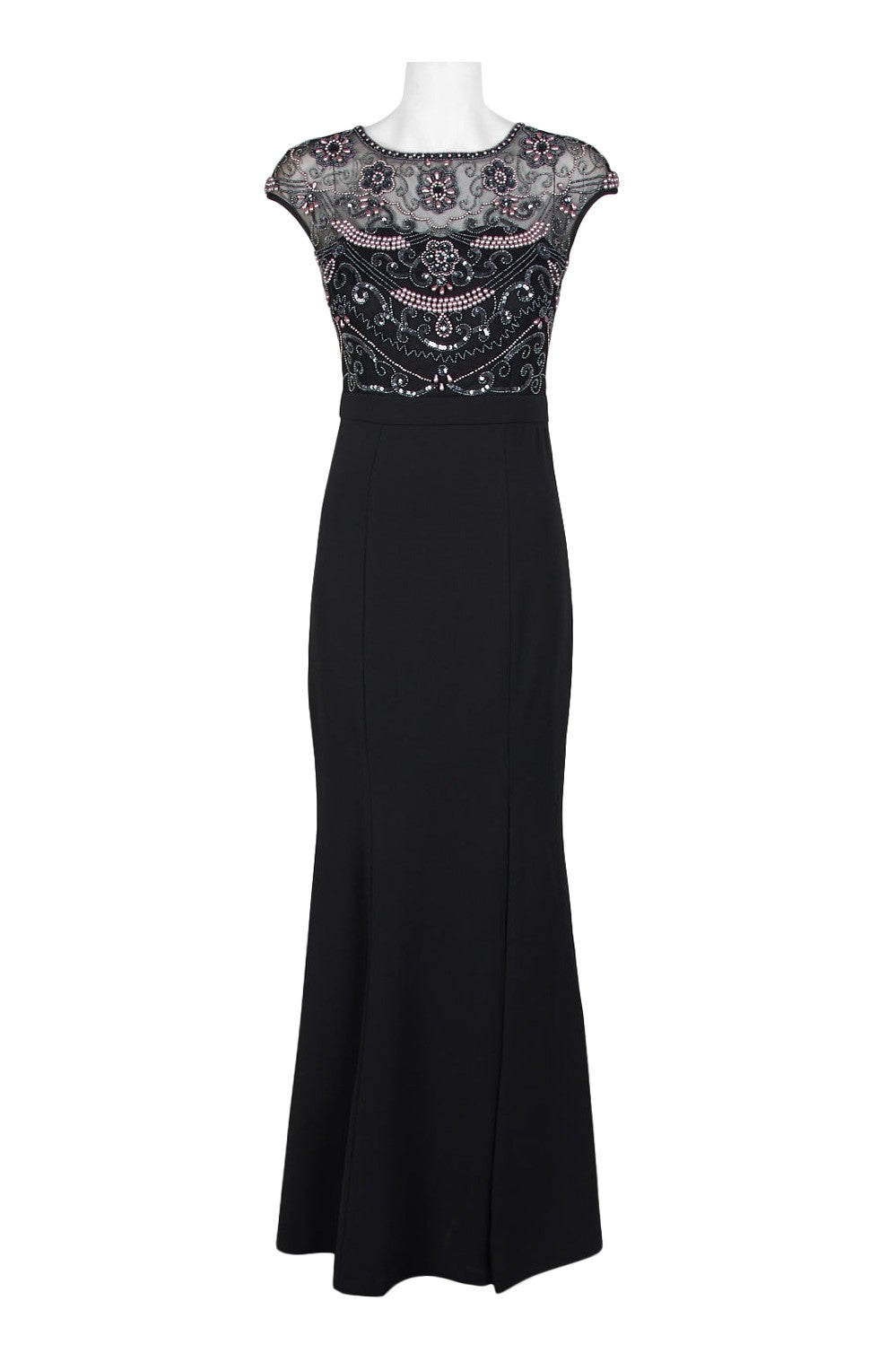 Aidan Mattox Embellished Mesh Bodice Crew Neck Cap Sleeve Keyhole Back